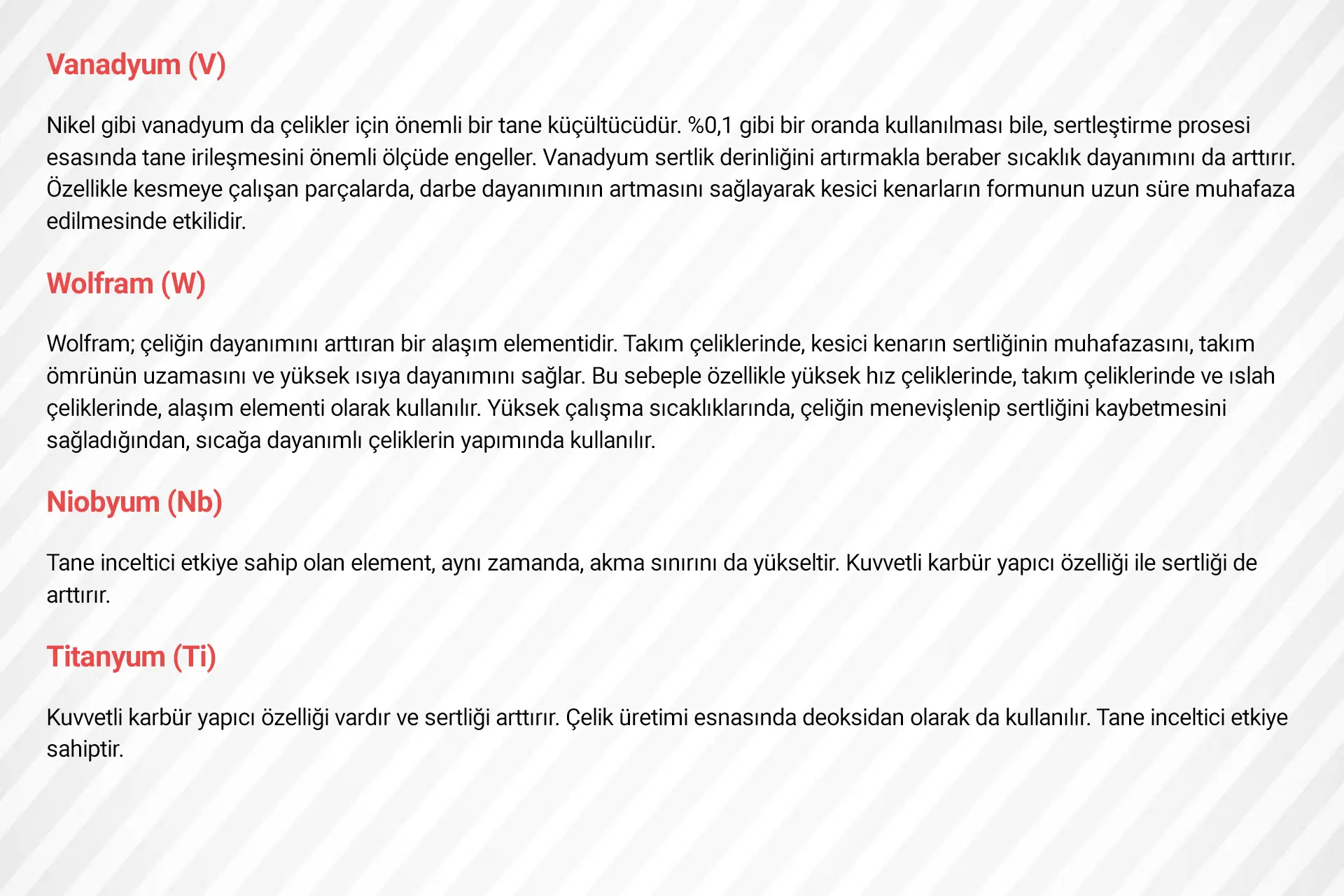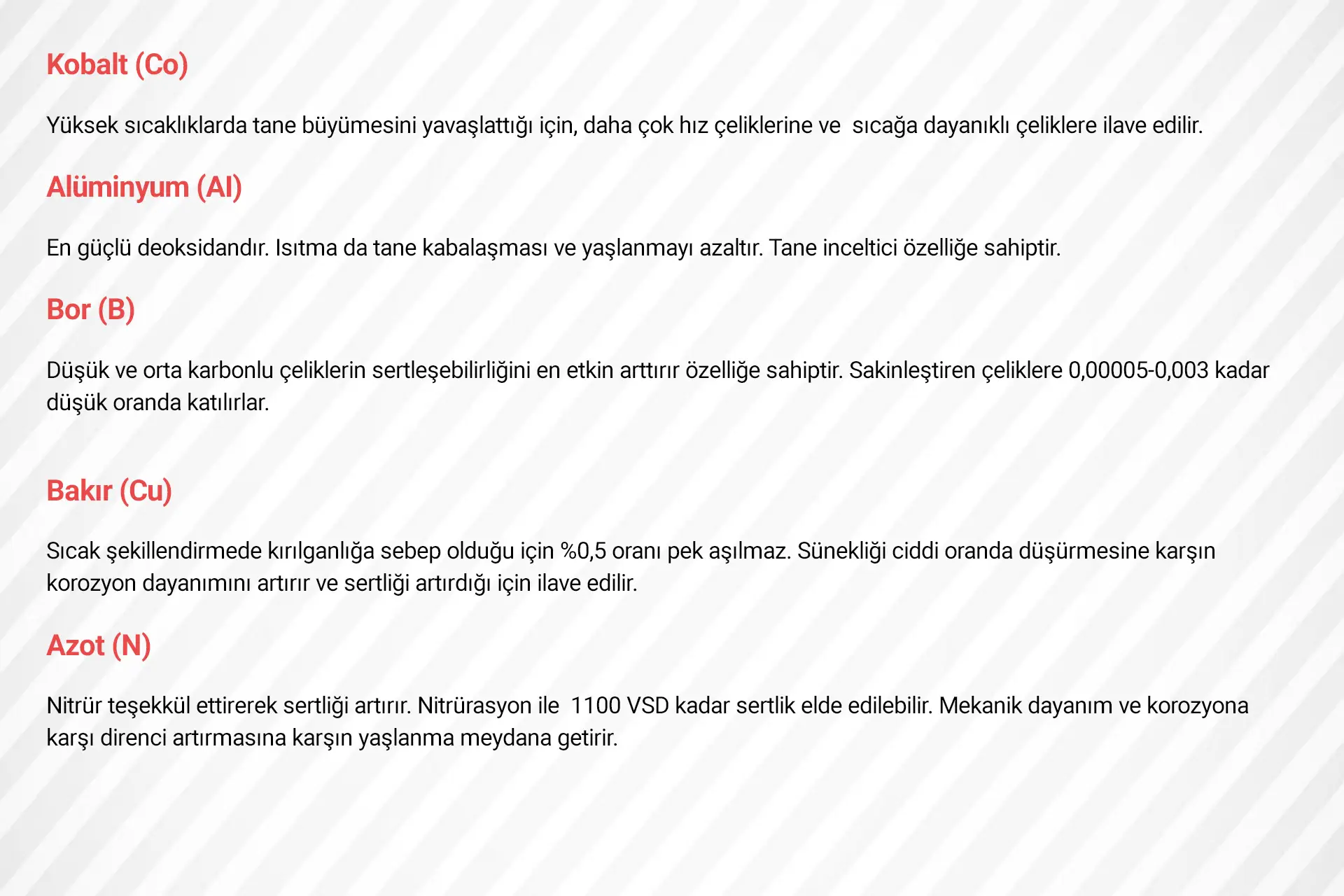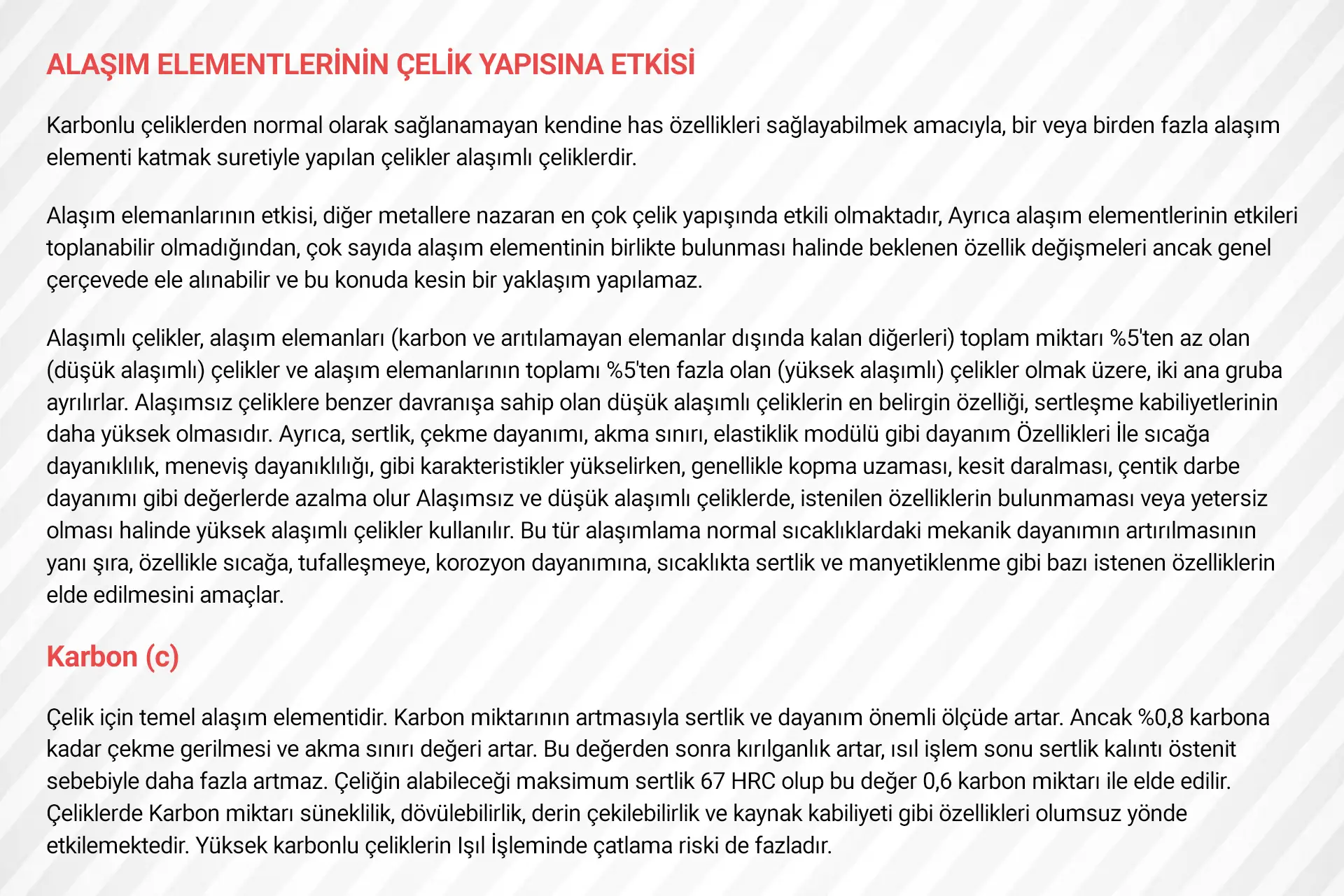 ALAŞIM ELEMENTLERİNİN ÇELİKLERİN ÖZELLİKLERİNE ETKİLERİ
