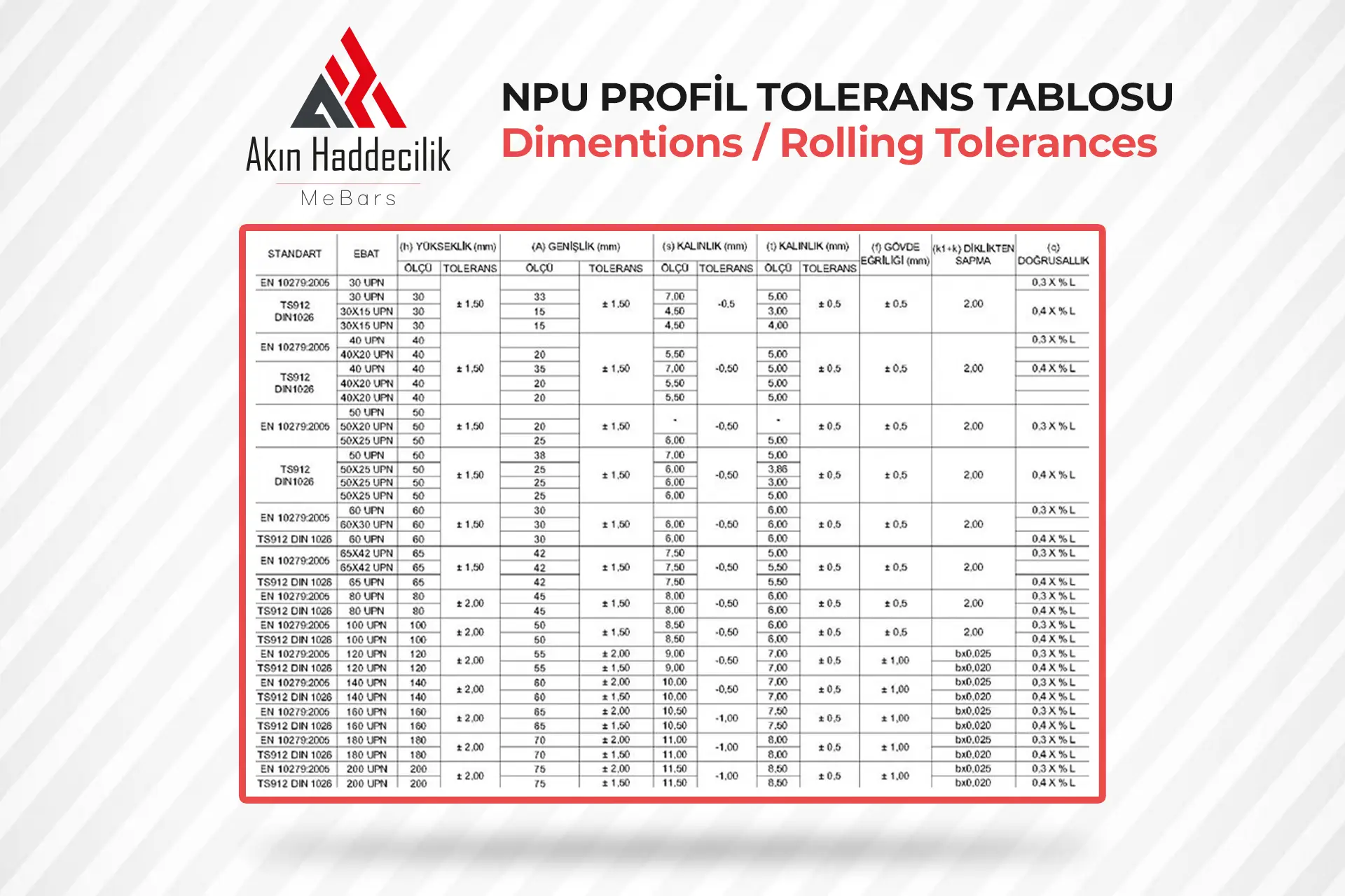NPU PROFİL TOLERANS TABLOSU