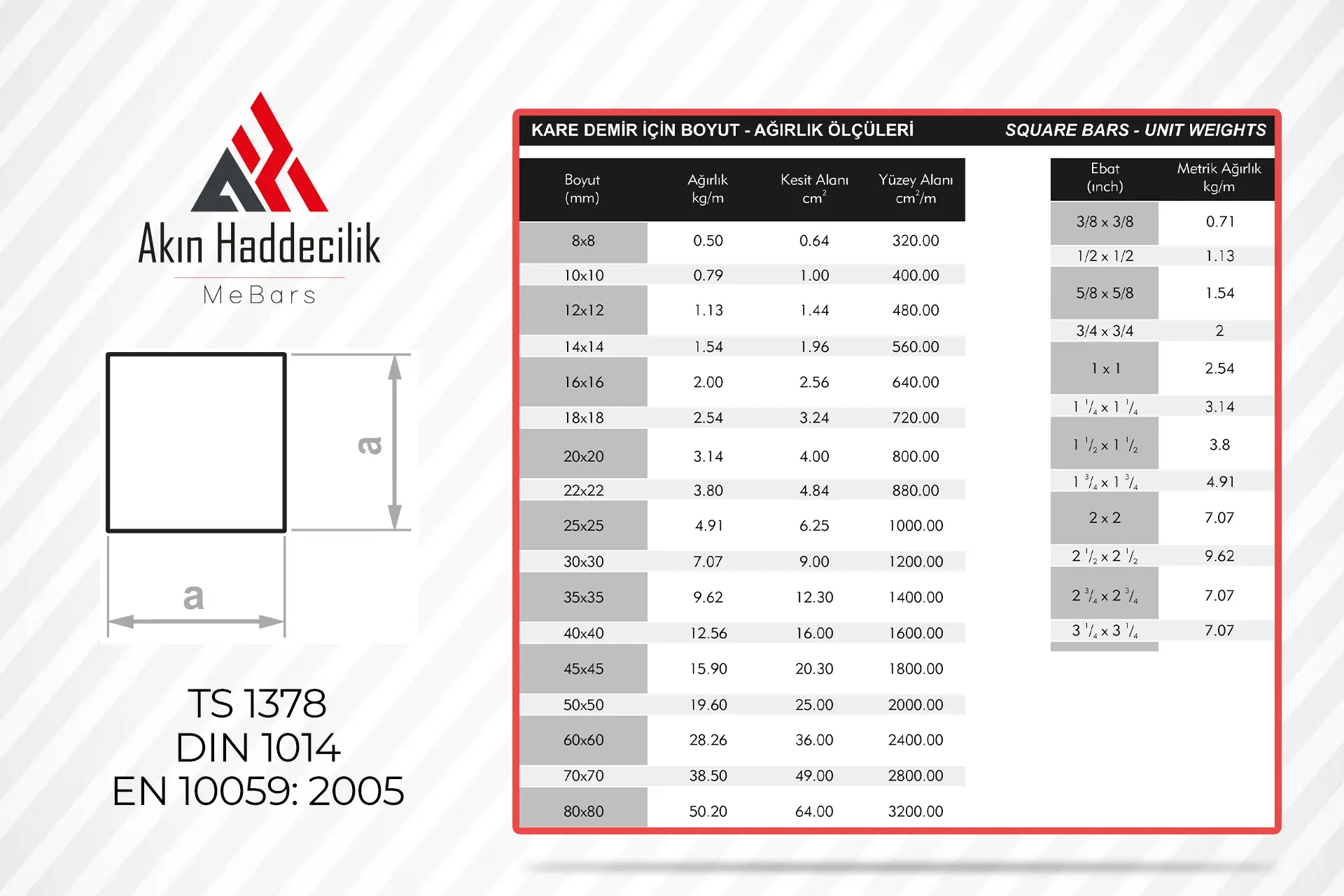 Akın Haddecilik A.Ş. geniş bir kullanım yelpazesine sahip olan Kare profilin üretimini birçok farklı ölçüde, kalitede ve toleranslarda yapmaktadır.