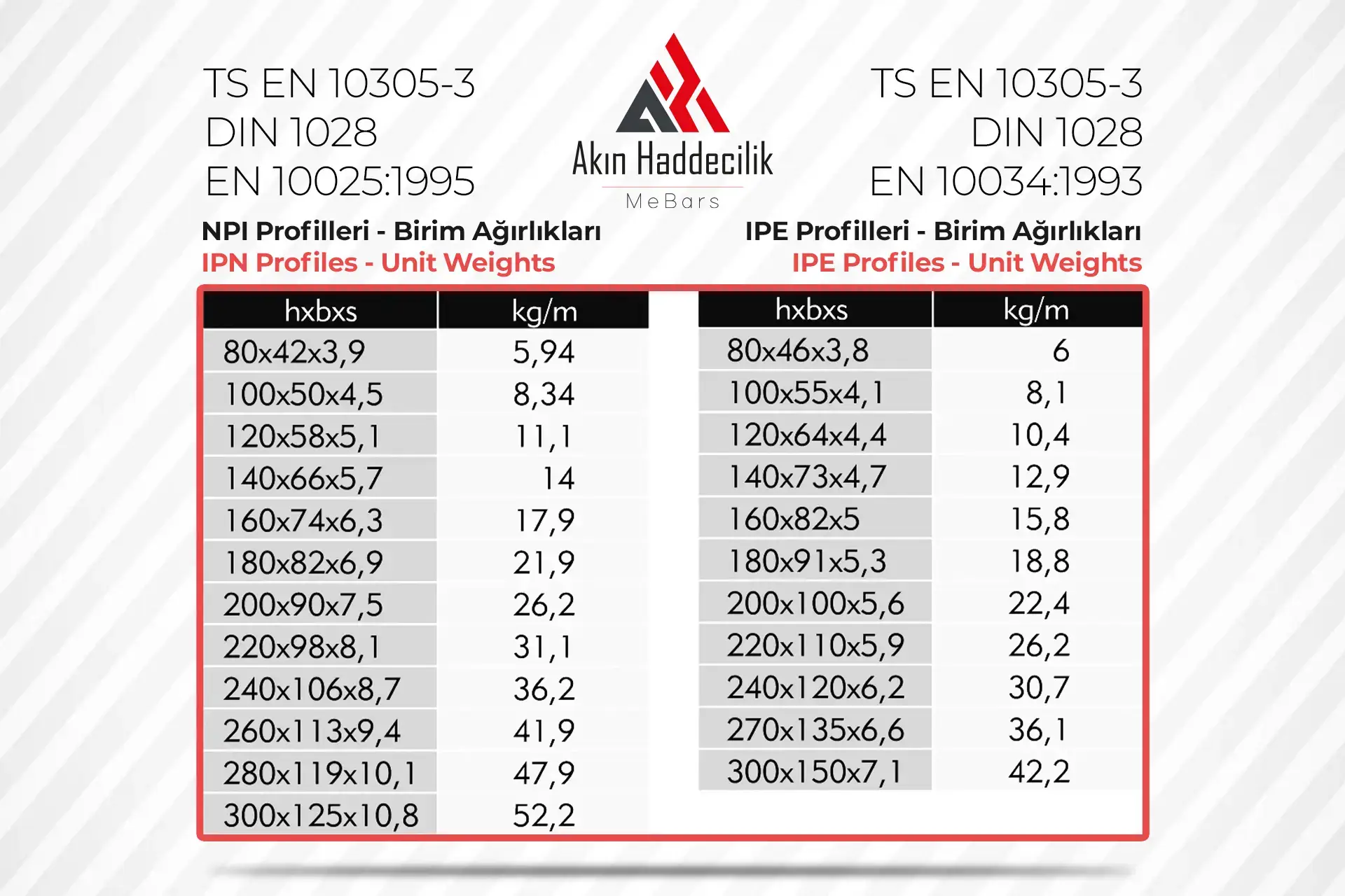 Akın Haddecilik, İzmir ve Denizli tesislerinde üretimi yapılan, demir çelik sektöründe ve başka sektörlerde çeşitli kullanım alanları bulunan NPI – IPE Profillerini birçok farklı ölçüde, kalitede ve 3mt – 12mt boyları arasında üretebilme kapasitesine sahiptir. Üretilen bu NPI – IPE Profiller yapısal çelik ve vinç sanayi gibi pek çok farklı sektörlerde kullanılır.